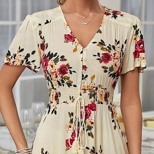 Naisten rento solmio A-linjainen mekko kukkakuviolla