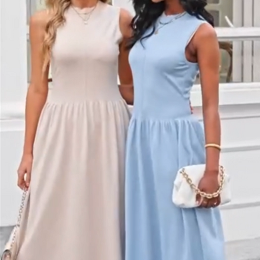 Naisten tyylikäs ja tyylikäs pyöreäkaulainen laskostettu mekko