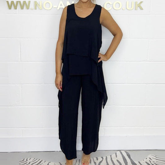 Rento hihaton löysä yläosa ja housut puku plus kokoisille naisille