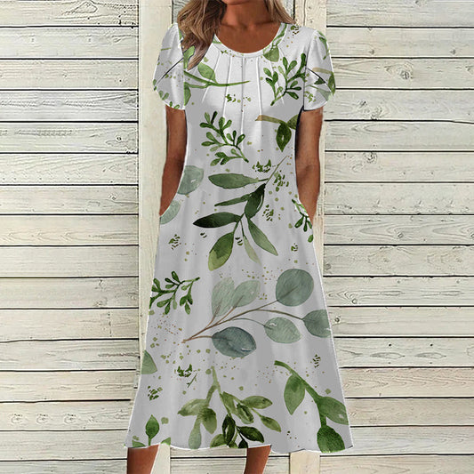 Naisten kukkakuvioitu lyhythihainen arkimekko