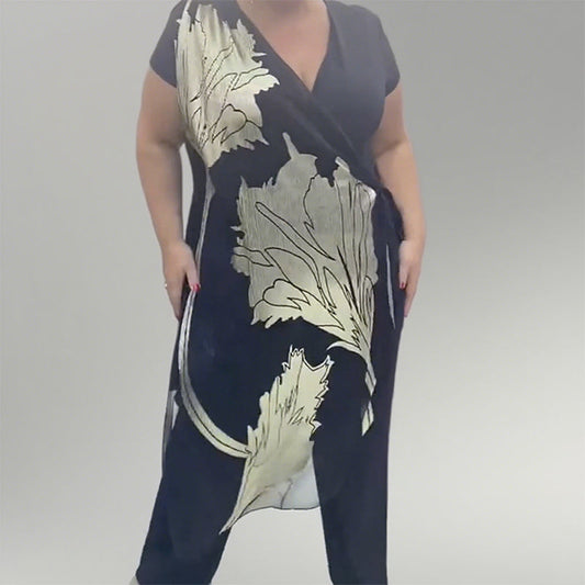 Rento V-aukollinen Halkiollinen Neulottu Kaksiosainen Setti - Vaivaton Eleganssi Jokaiseen Tilaisuuteen