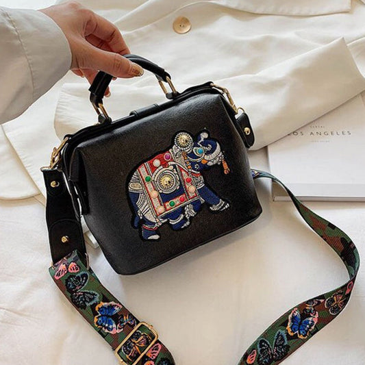 Uniikki Nahkalaukku Kirjotulla Norsukuviolla