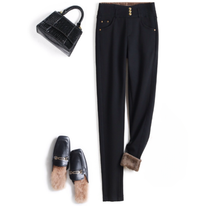 Best Gift for Her - Women's Thickened Warm High Waist Stretch Black Tight Trousers