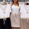 MONIKÄYTTÖINEN JA AJATON MUOTOILU: Valkoisen (yläosa) ja aprikoosi/musta (hame) -värien neutraali yhdistelmä tekee tästä mekosta erittäin monipuolisen. Voit pukeutua juhlavasti korkokengillä ja koruilla iltaa varten tai rennosti sandaaleilla ja farkkutakilla arkipäivän käyttöön.