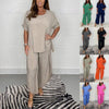 Yksinkertaisen, mukavan ja tyylikkään muotoilunsa ansiosta tämä yksivärinen kaksiosainen setti, jossa on pyöreä pääntie, on monien suosikki.