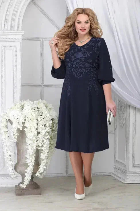 ELEGANTTI KAULAKORU & NELJÄNNEKSEN HIHAT: Kauniilla kaula-aukolla ja klassisella neljänneksen hihasuunnittelulla tämä mekko sopii kaikille vartalotyypeille.