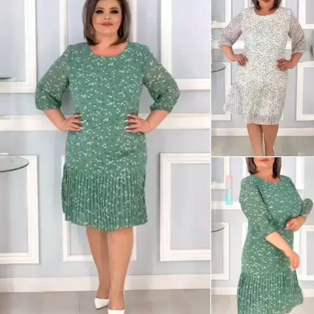 Tyylikäs tilkkutäkkimäinen laskostettu painettu mekko