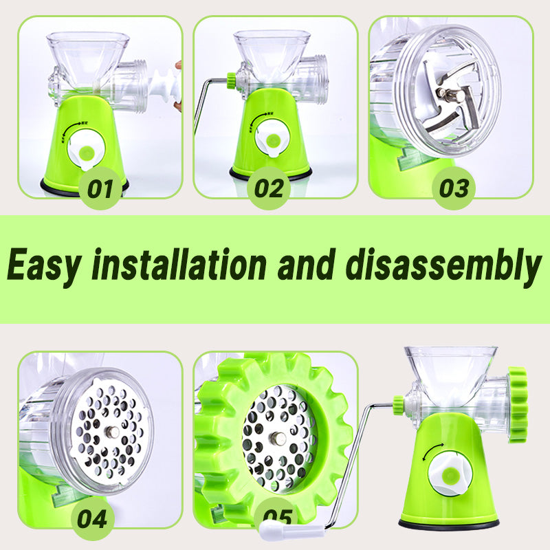 MONIPUOLINEN JAUHATUS: Tämä mylly ei rajoitu pelkästään lihaan, vaan se pystyy käsittelemään myös erilaisia ruokia, kuten chilejä, valkosipulia ja muita. Se on täydellinen vauvanruoan ja muiden soseiden valmistamiseen, mikä täyttää laajan valikoiman keittiötarpeita.