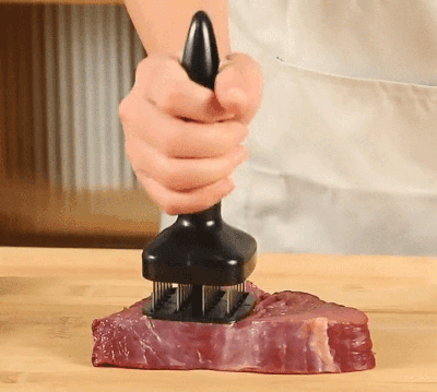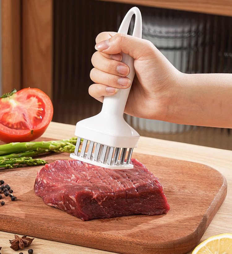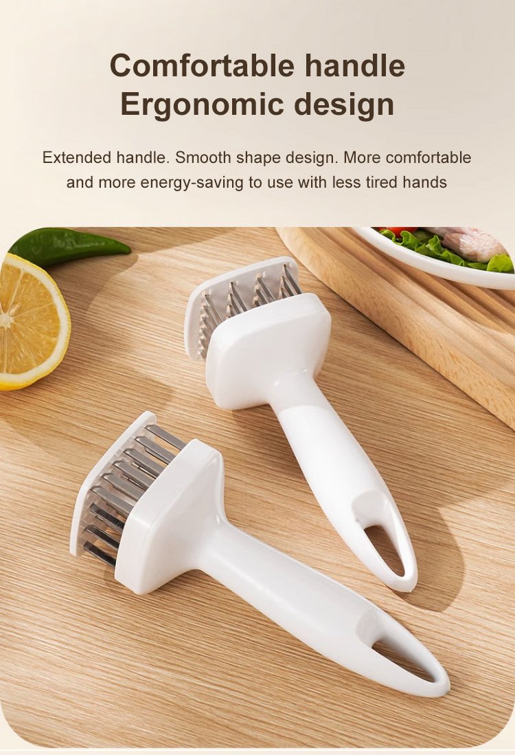 - 20-teräksinen ruostumaton teräs rikkoo helposti sitkeät lihakuidut ja sidekudoksen ja mahdollistaa marinadin imeytymisen lihaan nopeammin, mikä luo maukkaamman ja mehukkaamman lopputuloksen.