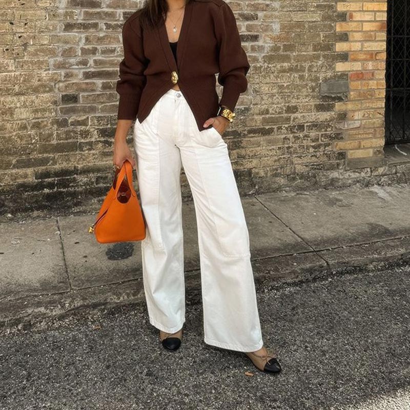 Pakkaus sisältää: 1 × Naisten elegantti yksinappinen neulepusero