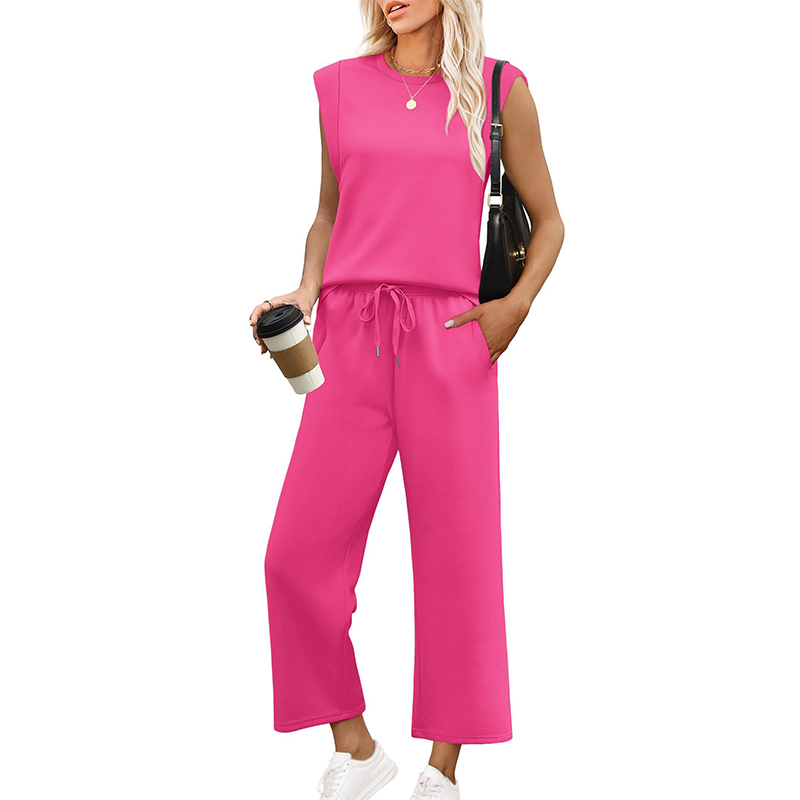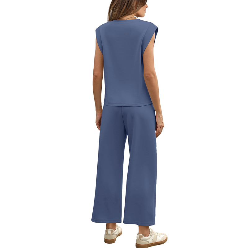 Pakkaus sisältää: 1 × Naisten rento kaksiosainen setti: lyhythihainen toppi ja leveälahkeiset cropped-housut