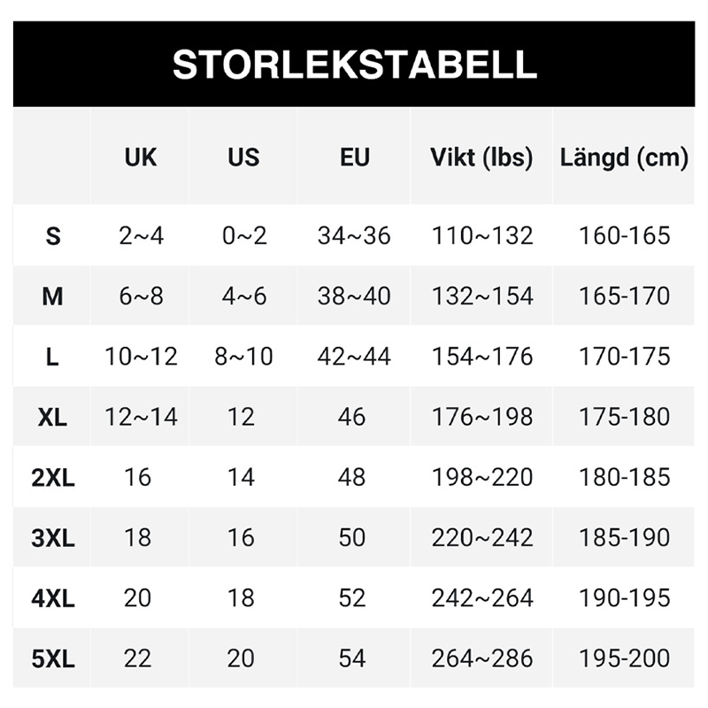 Koko: S, M, L, XL, 2XL, 3XL, 4XL, 5XL