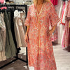 PAISLEY-KUVIOINEN MAXI-MEKKO: Piristä vaatekaappiasi tällä silmiinpistävällä kuviomekolla. Yksityiskohtainen kuvio tuo ripauksen eleganssia, tehden siitä täydellisen valinnan tyylikkäitä mutta vaivattomia asuja rakastaville.