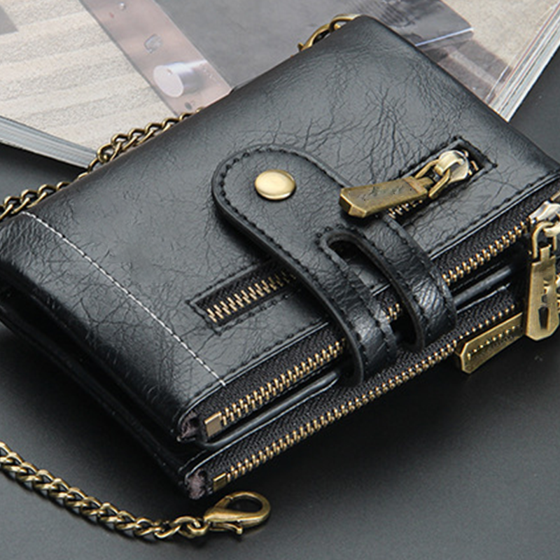 TURVALLINEN SUUNNITELMA – Häviämisen estävä ketju varmistaa, että lompakkosi pysyy kiinni housuissa tai laukussa, estäen sen katoamisen tai varastamisen liikkeellä ollessasi. Täydellinen aktiiviseen elämäntapaan ja niille, jotka arvostavat sekä tyyliä että turvallisuutta.