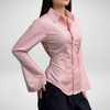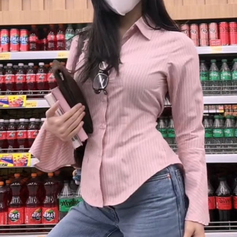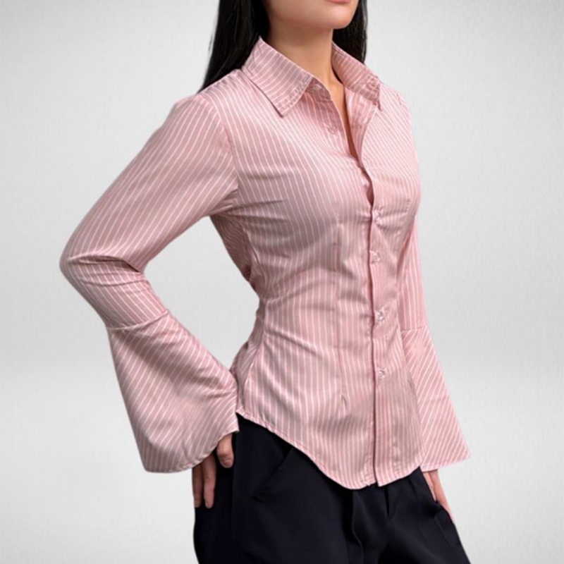 TYYLITÄYTTÖ RAIDALLA SUUNNITTELLA: Vaaleanpunainen raidallinen paita, jossa on kauluspaita, tuo modernin ilmeen vaatekaappiisi. Pue se päällesi itsevarmuudella ja viehättävällä otteella.