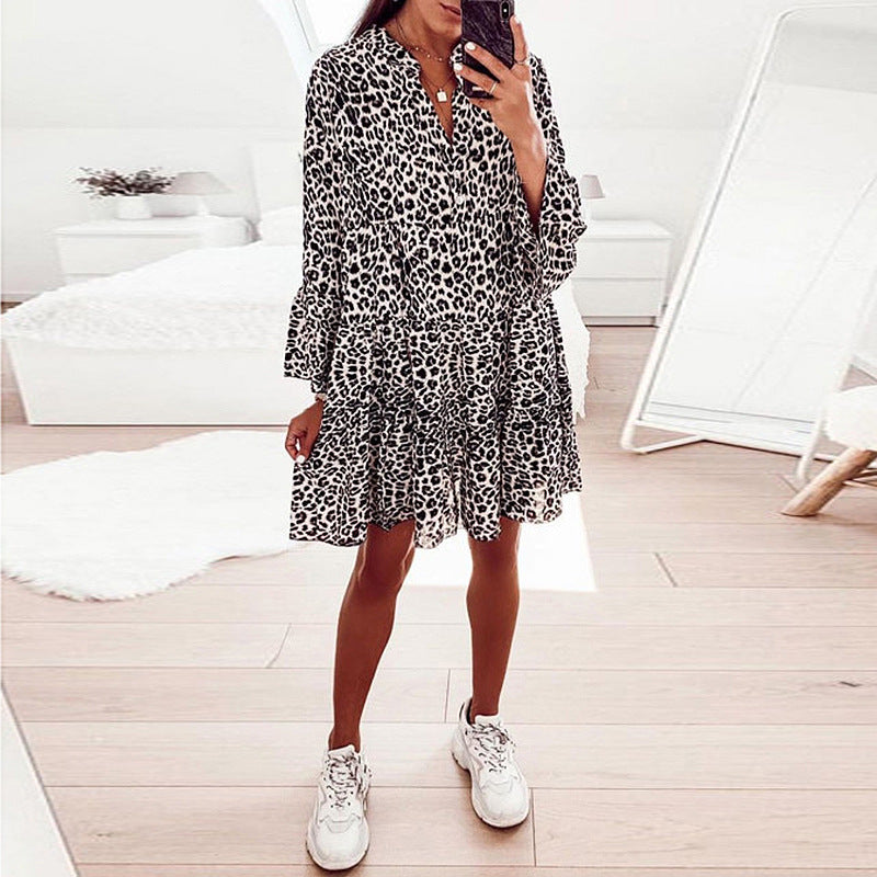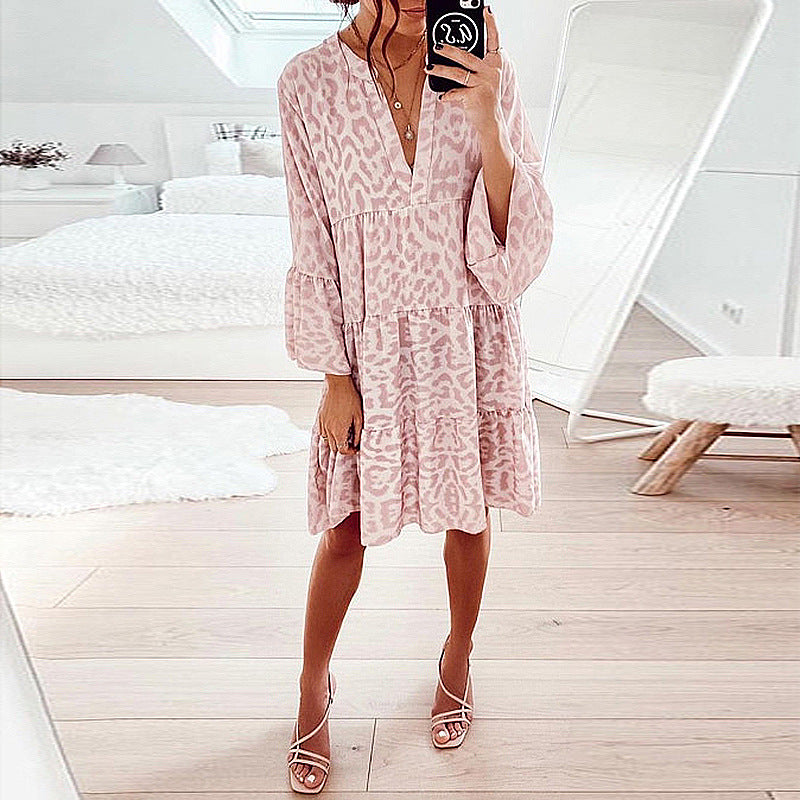 Tämä painettu pitkähihainen väljä V-kaula-aukkoinen tilkkumekko sisältää syvän V-kaula-aukon, röyhelöhihat ja rennon istuvuuden. Se on valmistettu pehmeästä ja hengittävästä joustavasta polyesterikankaasta, mikä tekee siitä mukavan kaikissa tilaisuuksissa.