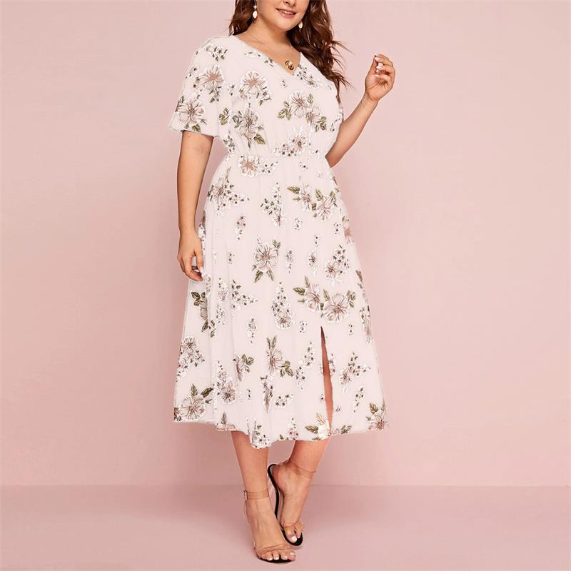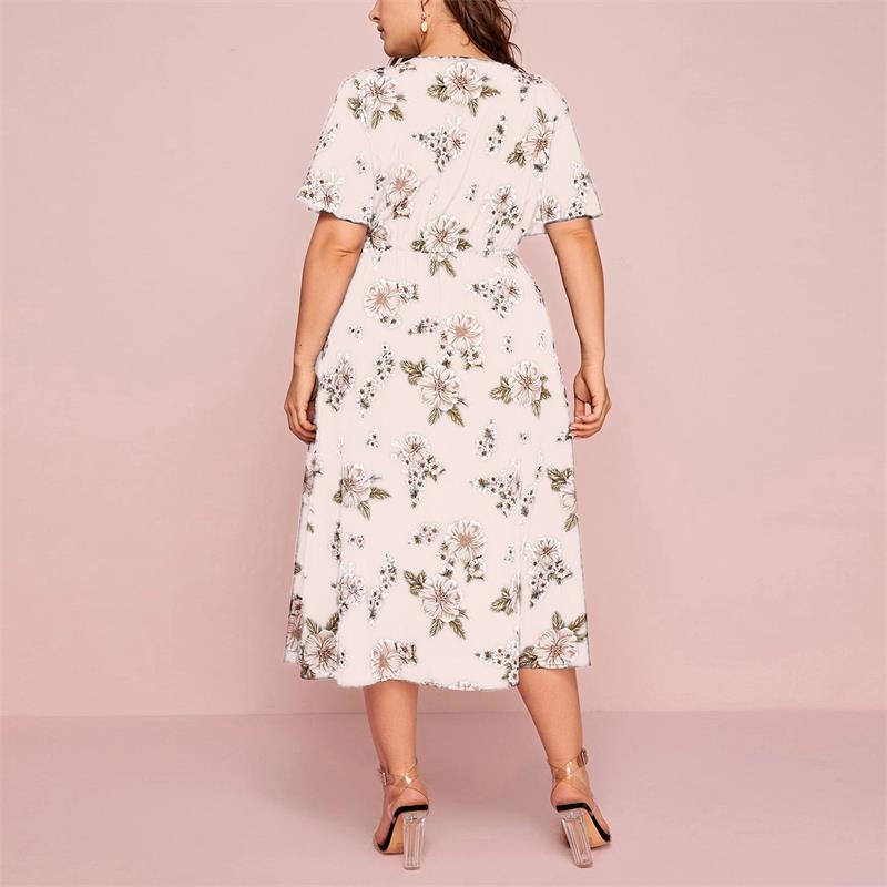 Naisten Suurikokoinen V-pääntie Kukallinen Sifonkimekko