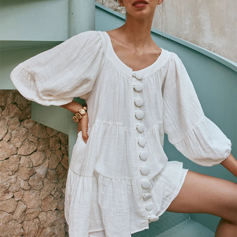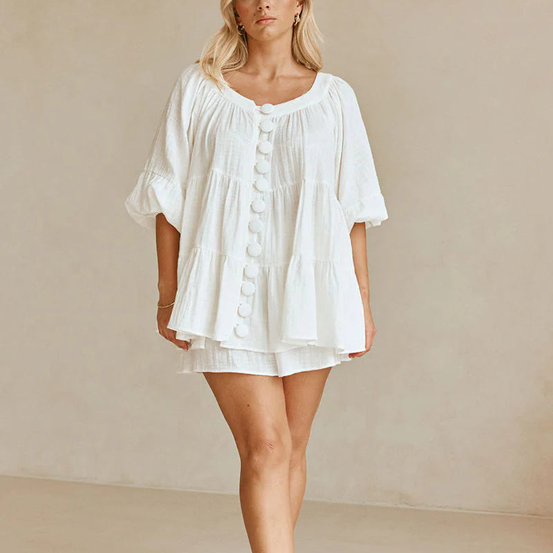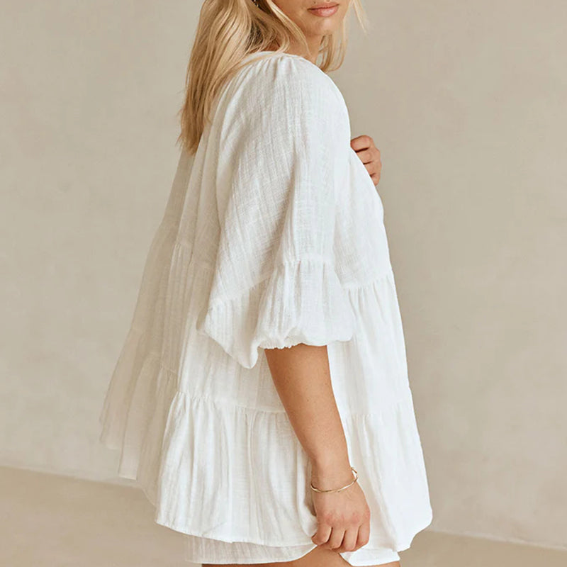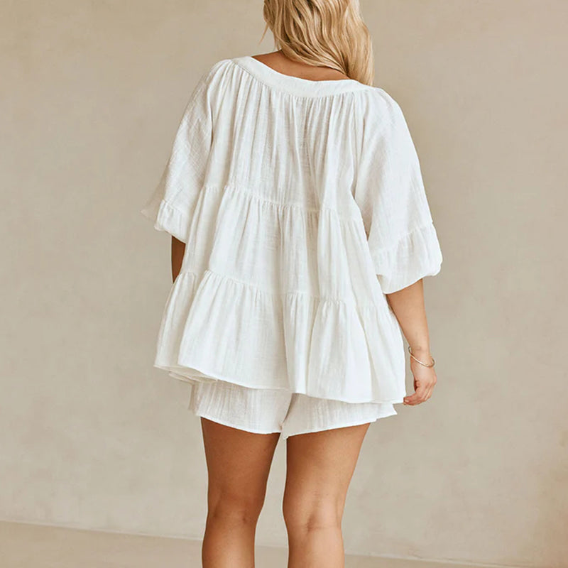 Paketti sisältää: 1* Naisille elegantti 2-osainen setti: paita ja shortsit