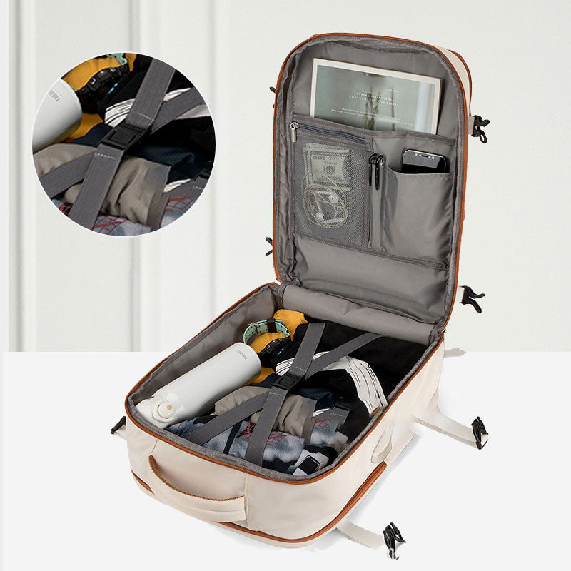 Esittelyssä 28L Suuri Kapasiteetti Kevyt Matkalaukku Täysin Avattava Reppu, joka on suunniteltu nykyaikaiselle matkustajalle, joka arvostaa järjestystä, mukavuutta ja tyyliä. Tämä monikäyttöinen reppu on täydellinen viikonloppumatkoille, liikematkoille tai päivittäisiin työmatkoihin.