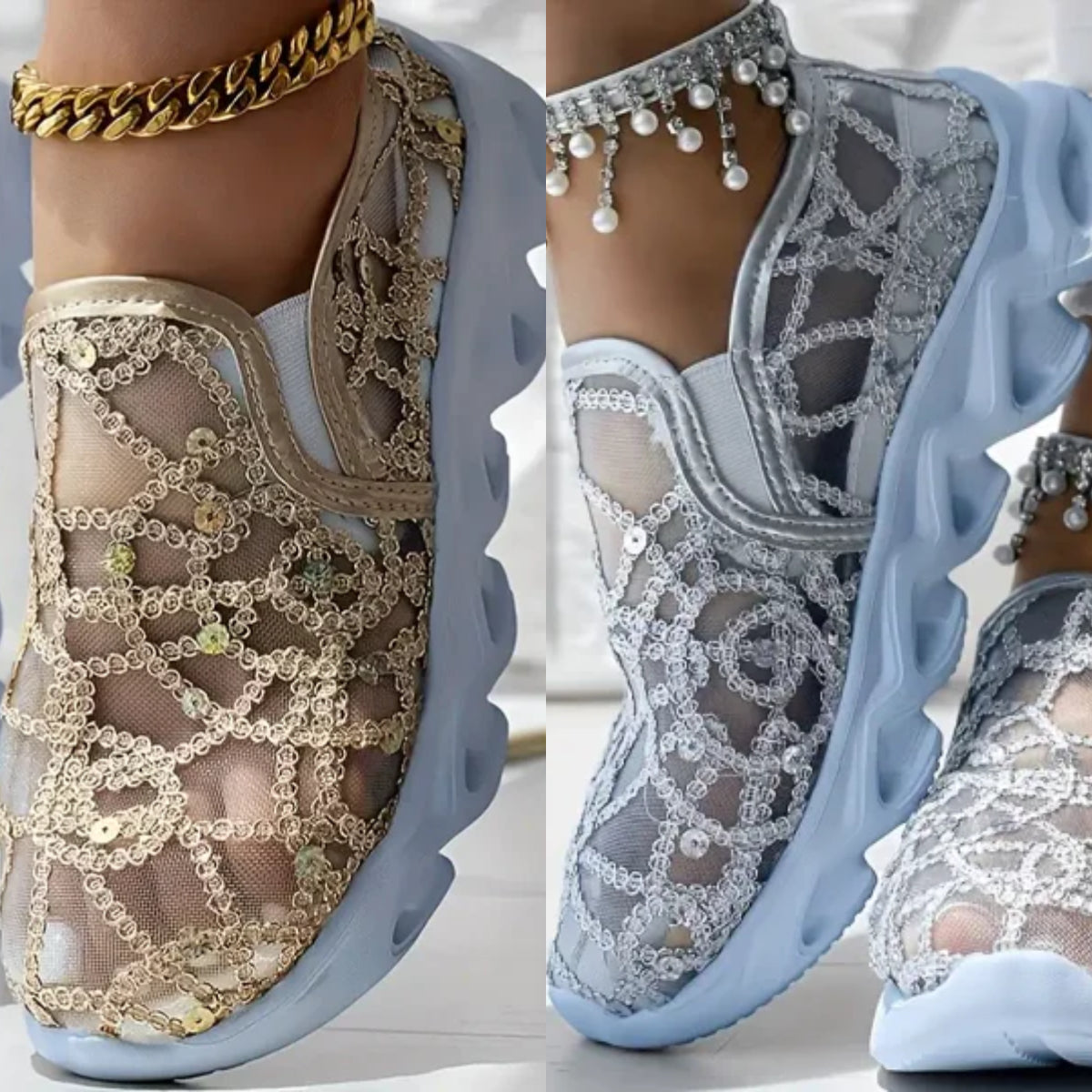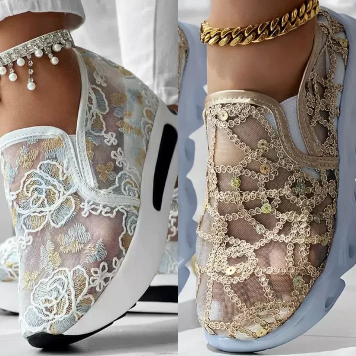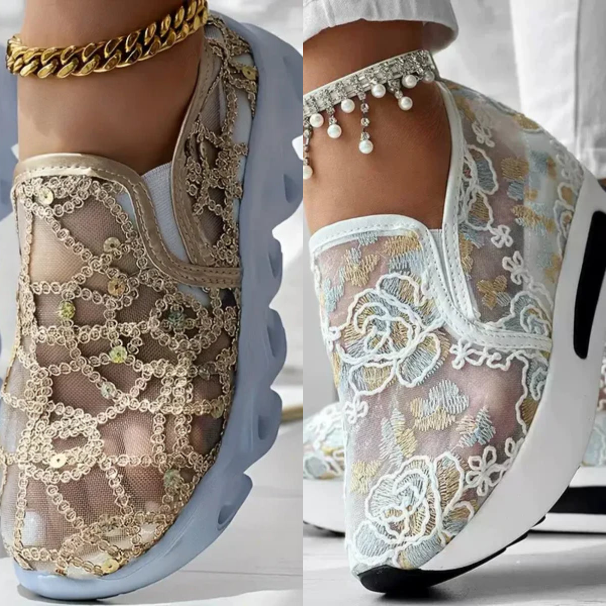 ELOISA KIRJAILUTAIDE – Astu kesään käsin ommeltujen kukkakuvioiden siivittämänä! Kimaltelevat paljetit tanssivat hengittävän verkkokankaan päällä. Jokainen loaferi on käytettävä taideteos, joka yhdistää kasviaiheisen viehätyksen ja metallisen säihkeen – täydellinen valinta puutarhajuhliin tai rantalomille.