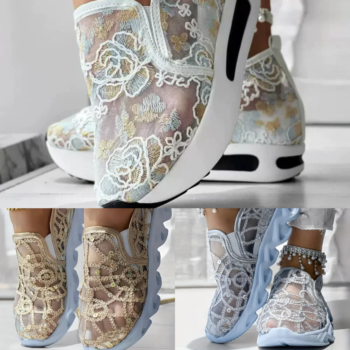Pakkaus sisältää: 1/2/3 paria × Kesäiset verkkokankaasta valmistetut kirjonta loaferit