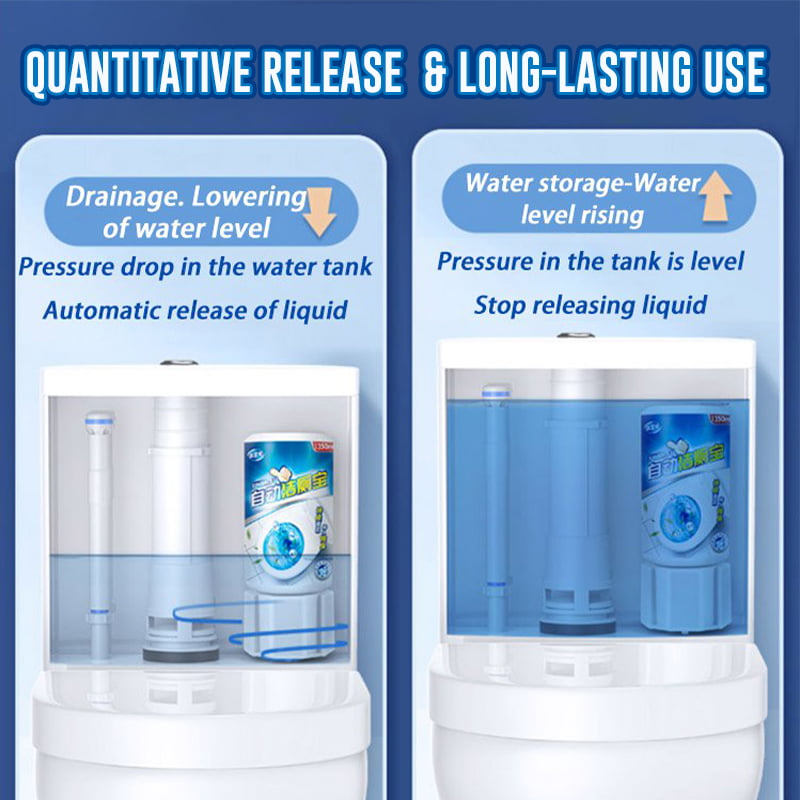 Monipuolinen puhdistus: Puhdistaa perusteellisesti wc:n reunan, sisäseinän, viemäriputken ja muut wc:n osat: tuottaa wc-säiliöstä tulevaa sinistä kuohuvaa vettä, joka puhdistaa wc:n reunan, sisäseinän, viemäriputken ja muut wc:n osat perusteellisesti.
