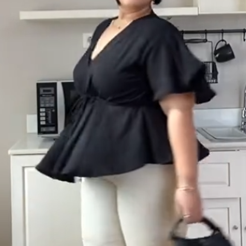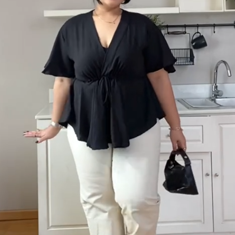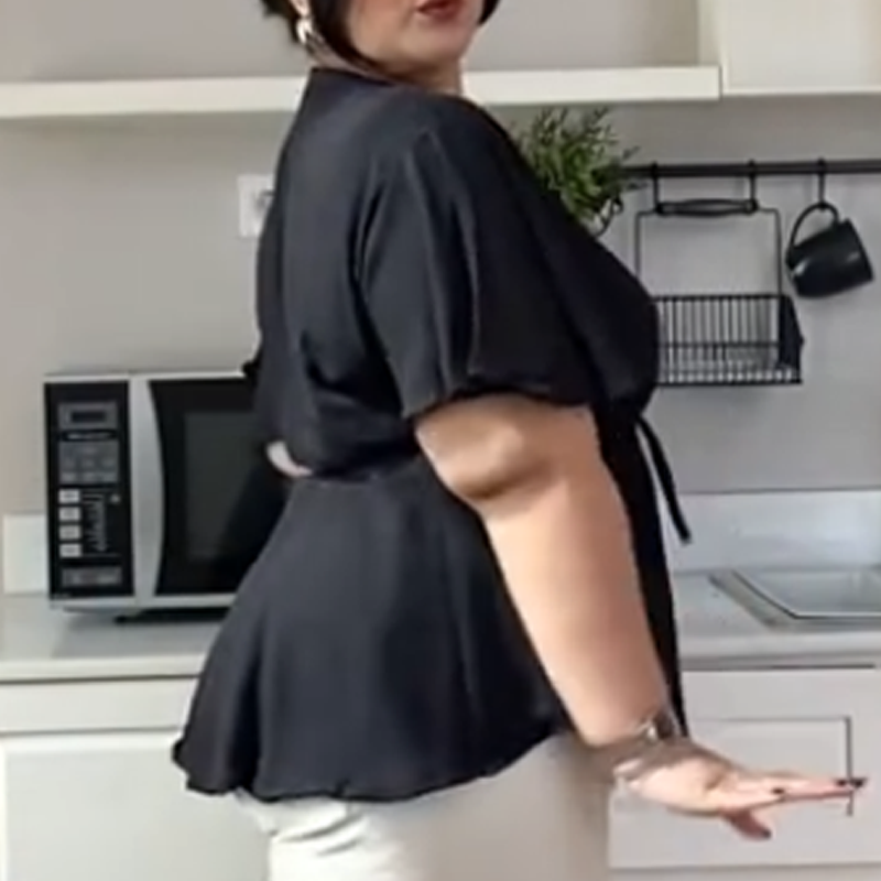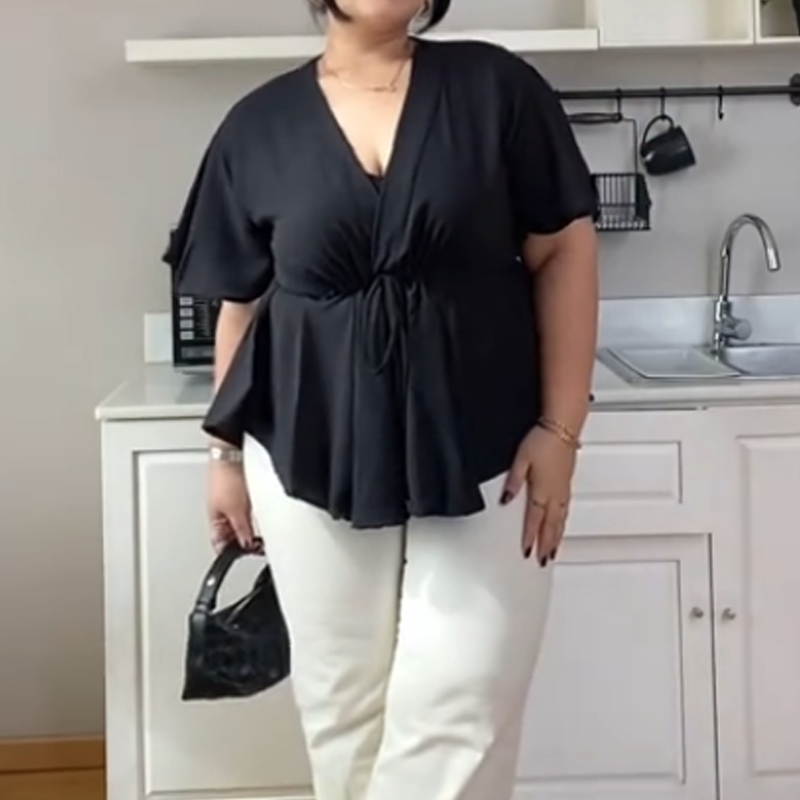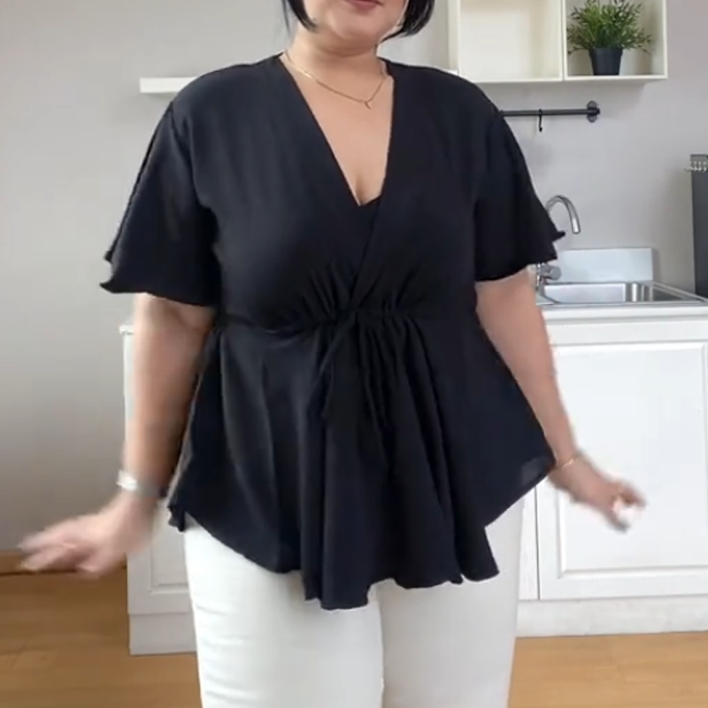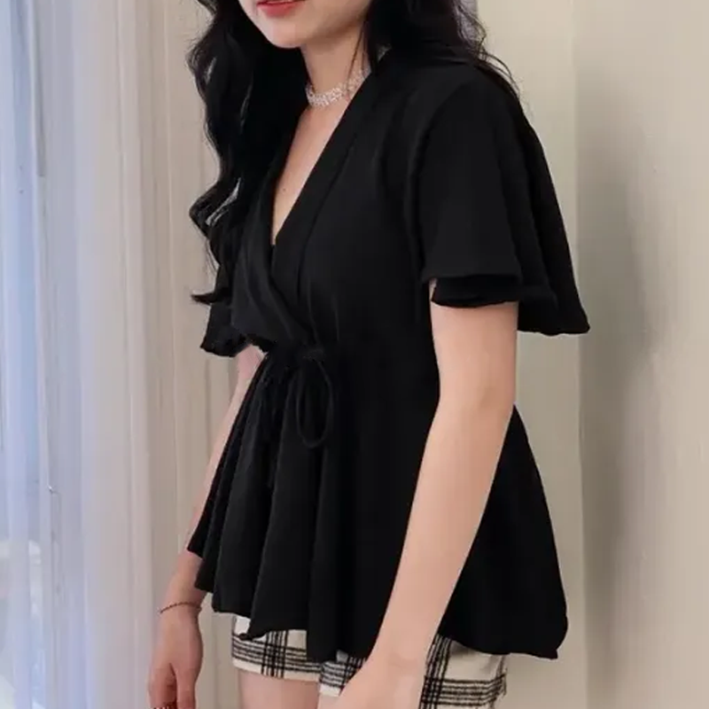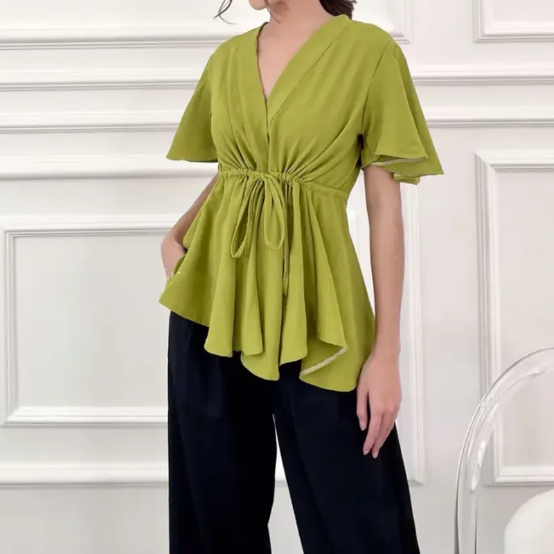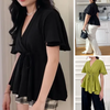 Pakkaus sisältää: 1 × Naisten trendikäs V-pääntiöllinen paita, vyötärösidoksella ja lyhyillä hihoilla
