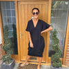 Tämä V-pääntiemekko on ajaton vaate, joka huokuu eleganssia ja monikäyttöisyyttä. Mekko on klassikko, joka tuo itsevarmuutta ja tyyliä jokaiseen vaatekaappiin. Sen kevyesti laskeutuva leikkaus ja imarteleva V-pääntie ovat suunniteltu sopimaan ja korostamaan vartaloasi – olipa vartalotyyppisi mikä tahansa. Laadukkaista materiaaleista valmistettu V-pääntiemekko tarjoaa täydellistä mukavuutta ja helppoutta, sopien niin juhlavampiin hetkiin kuin rennompaan tyyliin. Anna itsesi loistaa tässä ajattomassa klassikossa, joka ilmentää naisellisuuden ydinolemusta.