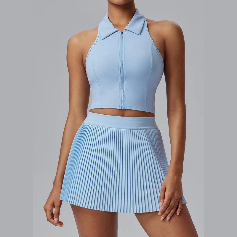 Paketti sisältää: 1* Naisten aktiivinen vetoketjullinen toppi ja hame -setti
