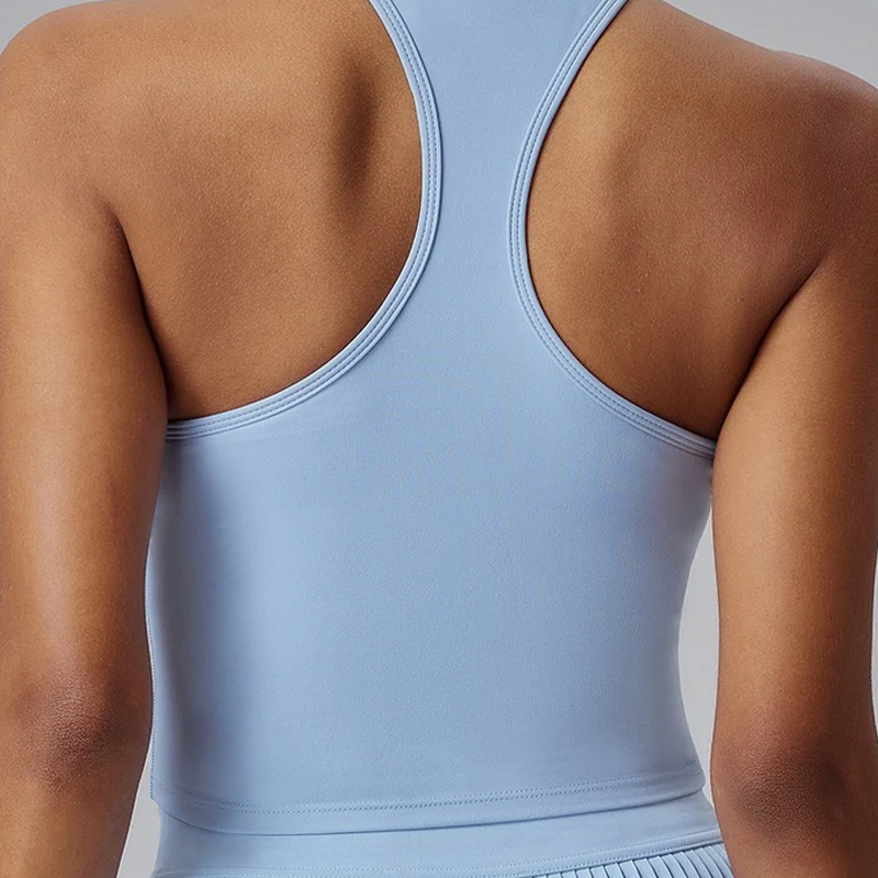 ZIP-ETUOSA, RACERBACK-MALLINEN TANKITOPPI– Tunne olosi vapaaksi racerback-mallin ansiosta, joka vapauttaa hartiat ja käsivarret jokaisen venytyksen tai noston aikana. Sileä vetoketju edessä mahdollistaa nopean pukeutumisen ilman takertelua. Terävä käännetty kaulus kehystää kaula-aukon ja lisää tyylikkyyttä. Sisäänrakennetut kiinteät rintatyynyt tarjoavat vakaan ja kevyen tuen – ilman ylimääräisiä kerroksia tai vaivaa.