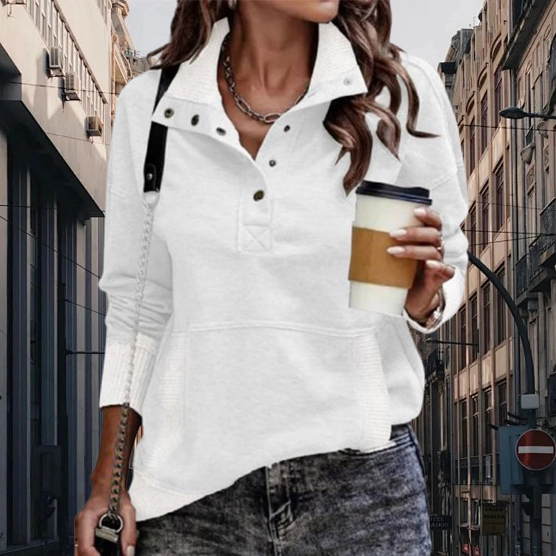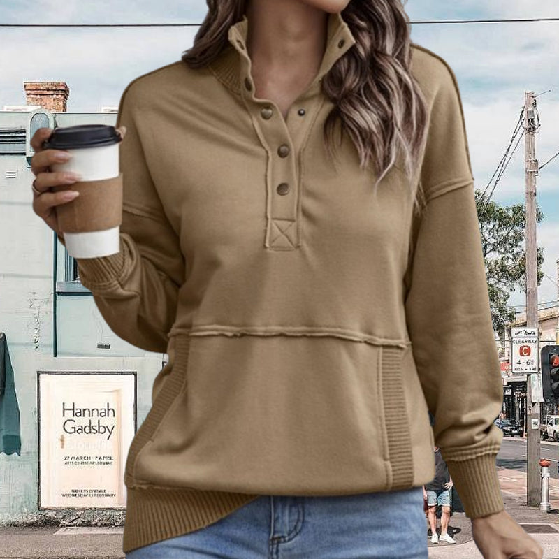 Pakkaus sisältää: 1 * Naisten rento jalusta kaulus snap painiketta Pulloveri