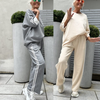 Pakkaus sisältää: 1 * Naisten Rento Raidallinen 2-Osainen Setti – Paita ja Leveälahkeiset Housut