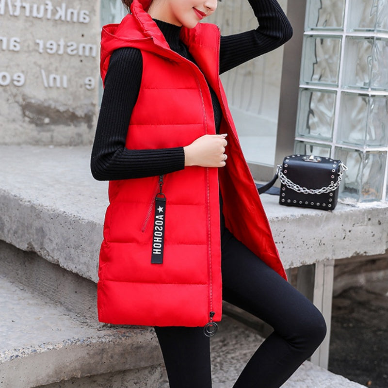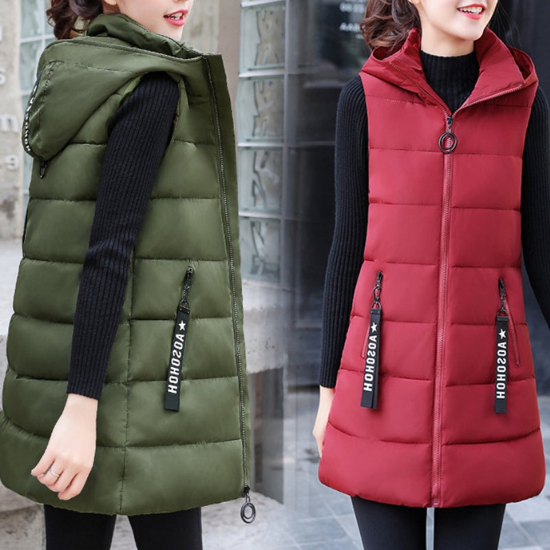 Naisten Pitkä Hihaton Puuvillatäytteinen Liivi Vetoketjulla