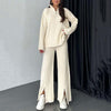 Pakkaus sisältää: 1 * Naisten viihtyisä Ribbed neulottu kaksiosainen setti, jossa on halki-jalkaiset housut.