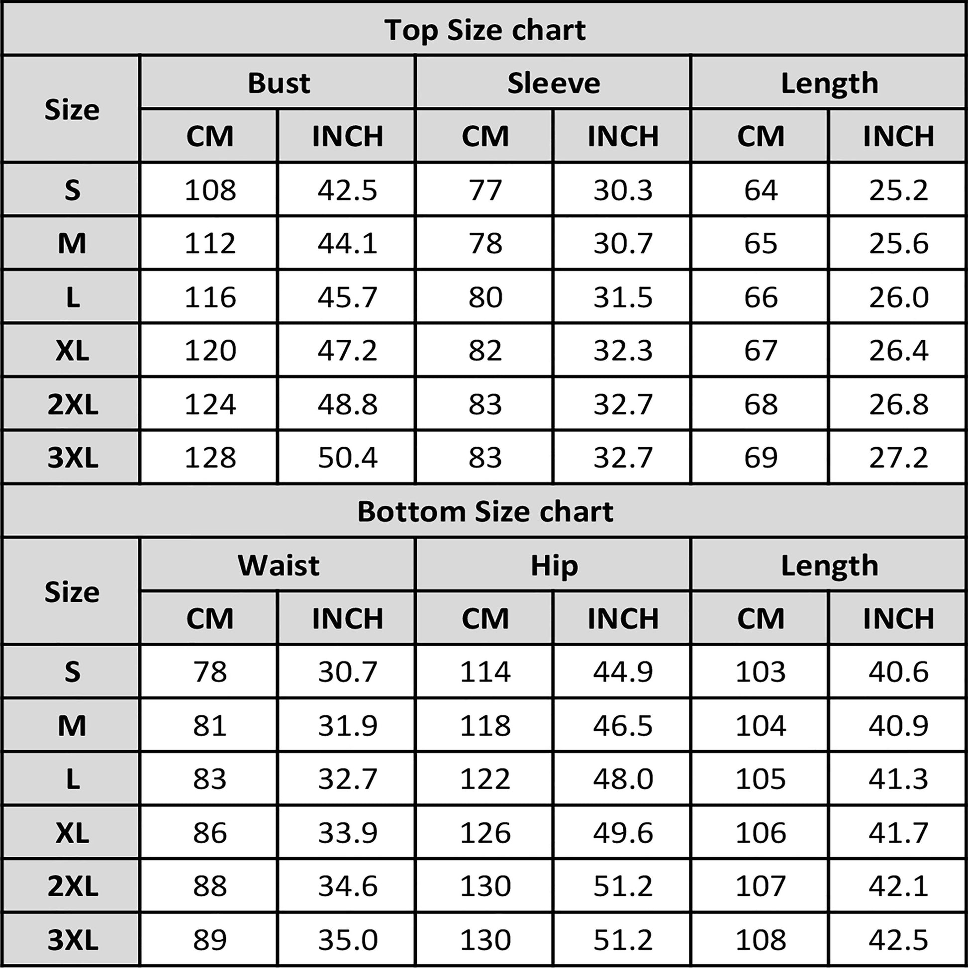 Koko: S, M, L, XL, 2XL, 3XL, 3XL.