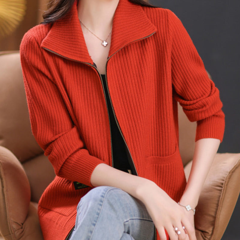 Naisten Neulottu Vetoketjullinen Neuletakki