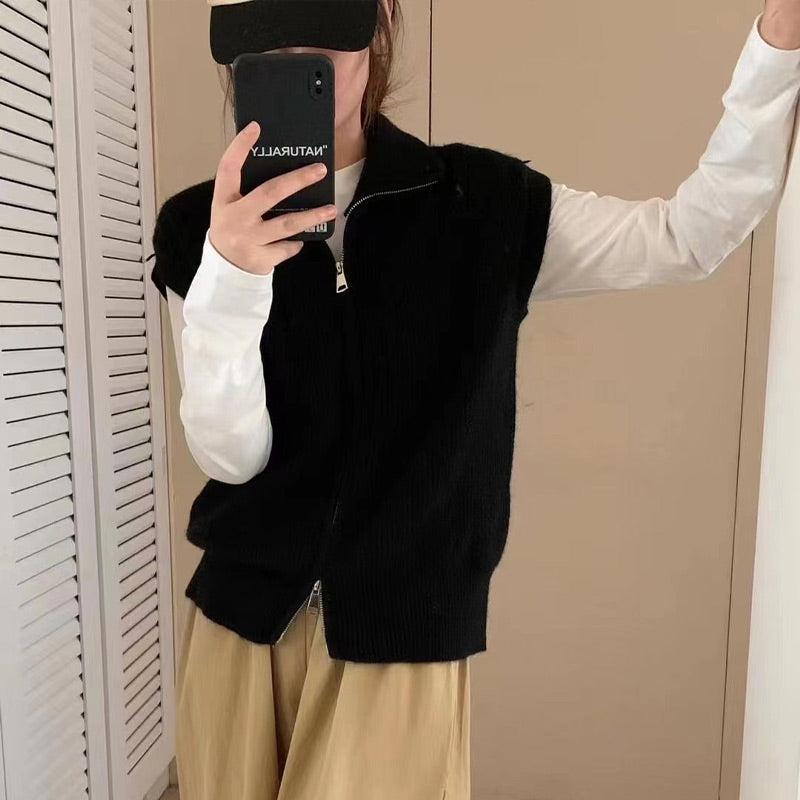Women's Lapel Collar Zipper Sweater Vest