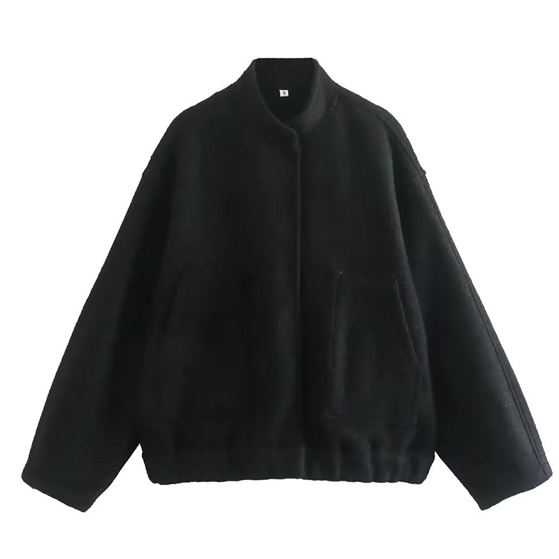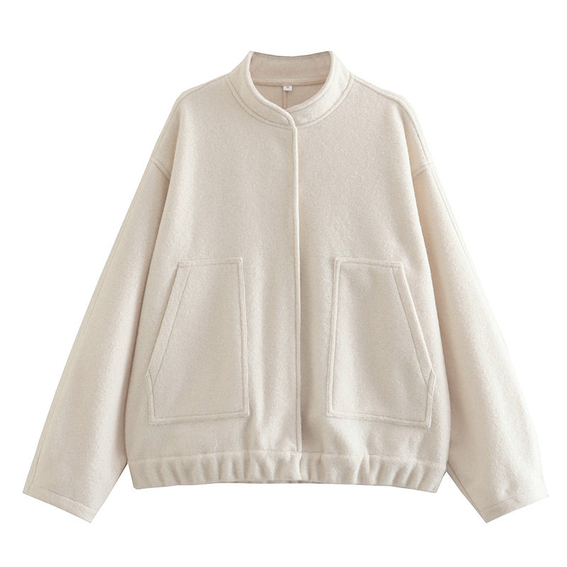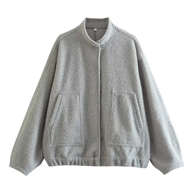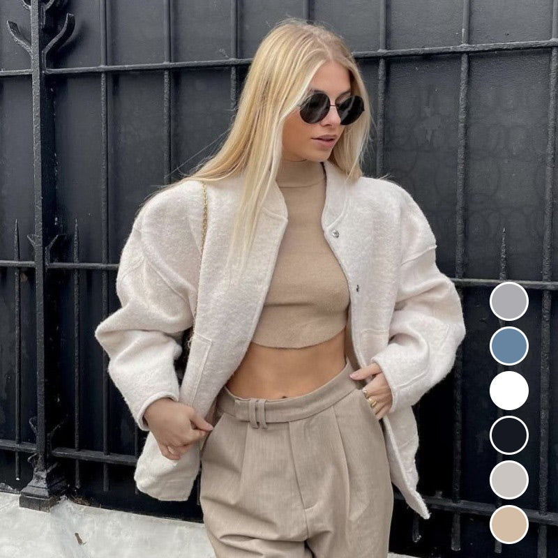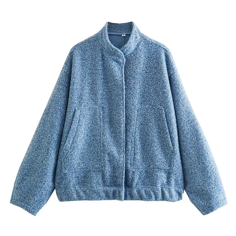 Naisten löysä rento takki, jossa on kaulus ja piilotettu painike