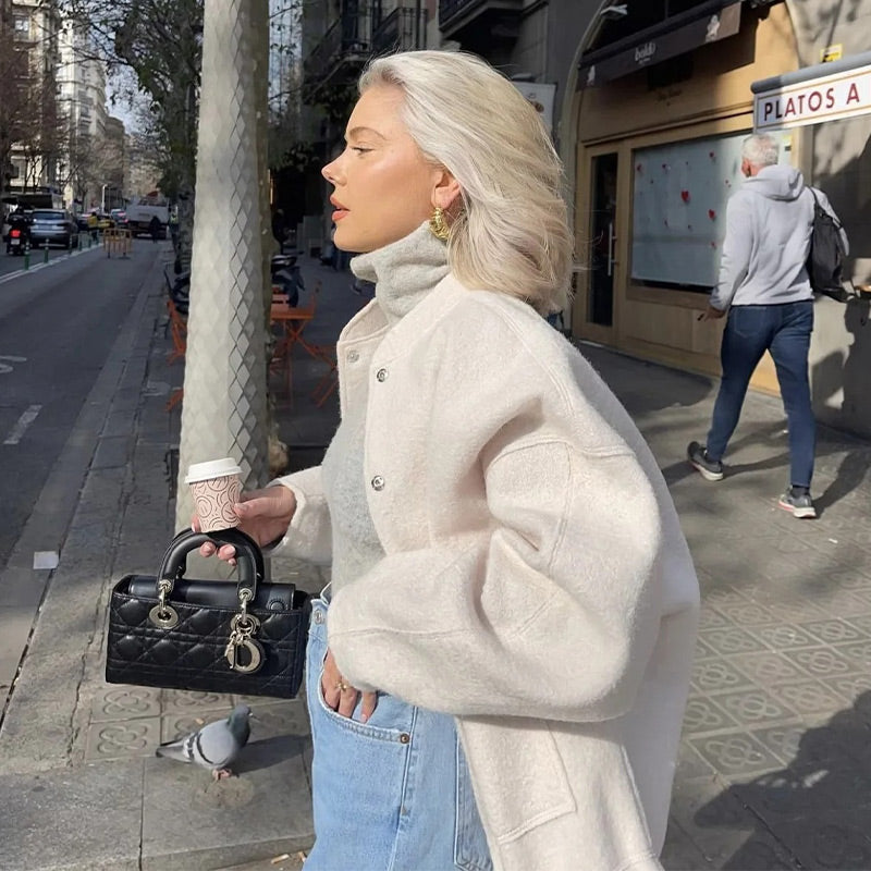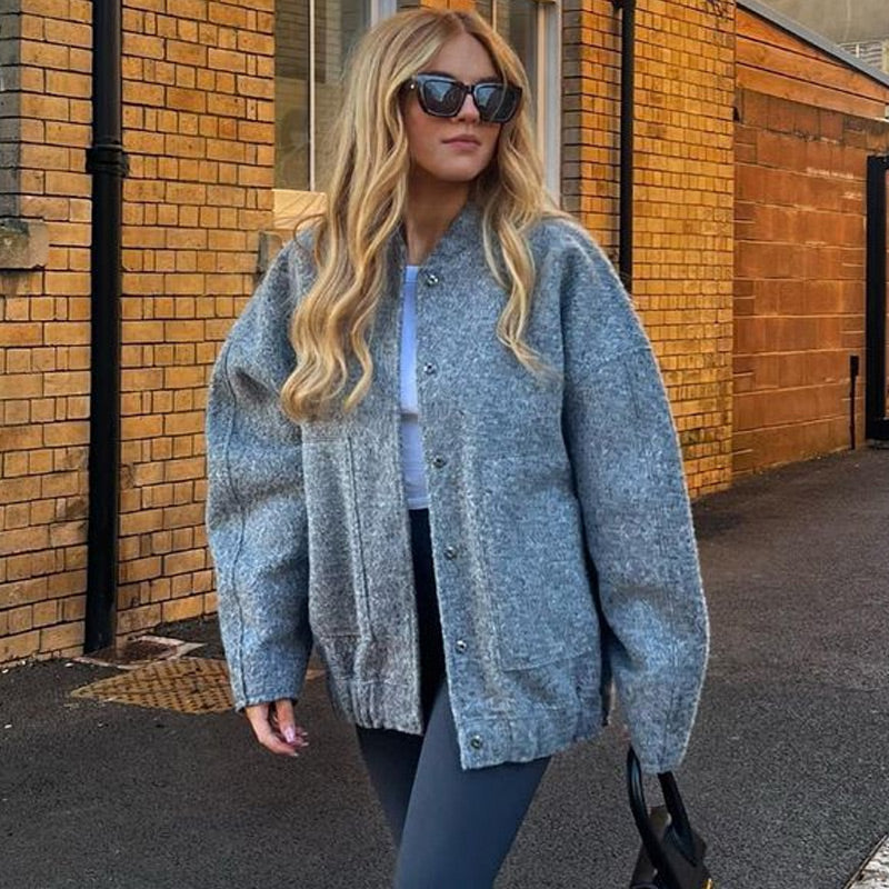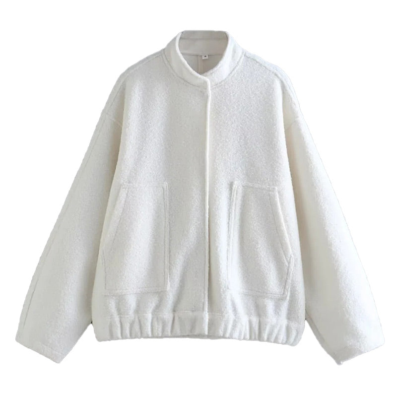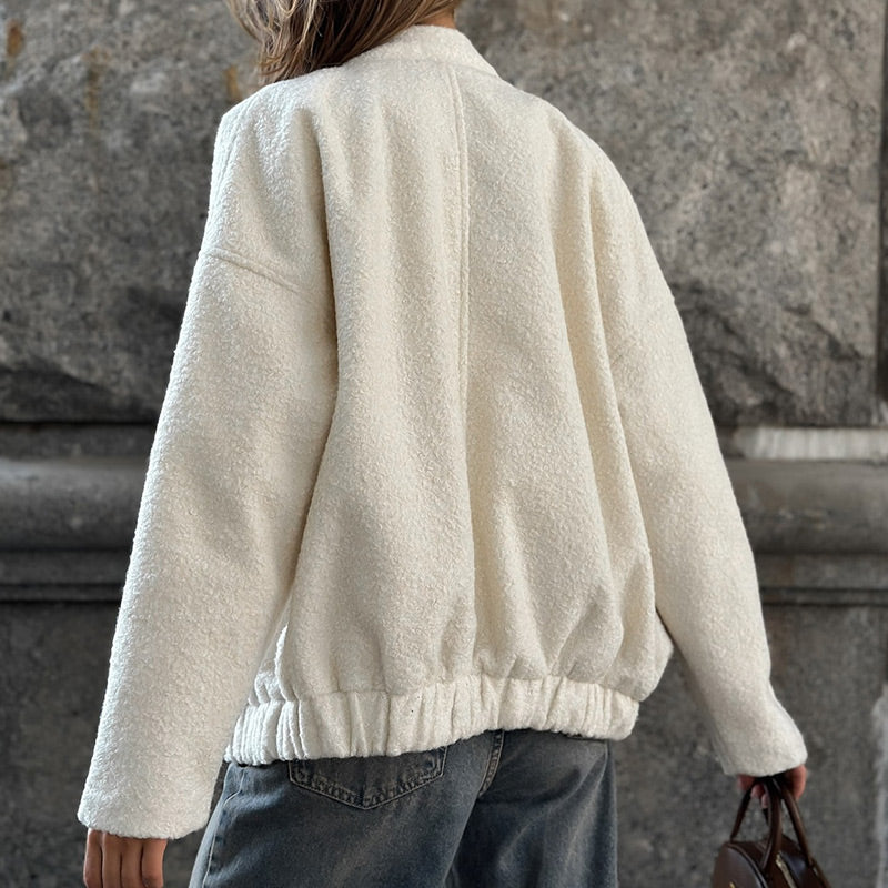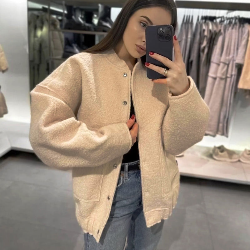 Naisten löysä rento takki, jossa on kaulus ja piilotettu painike