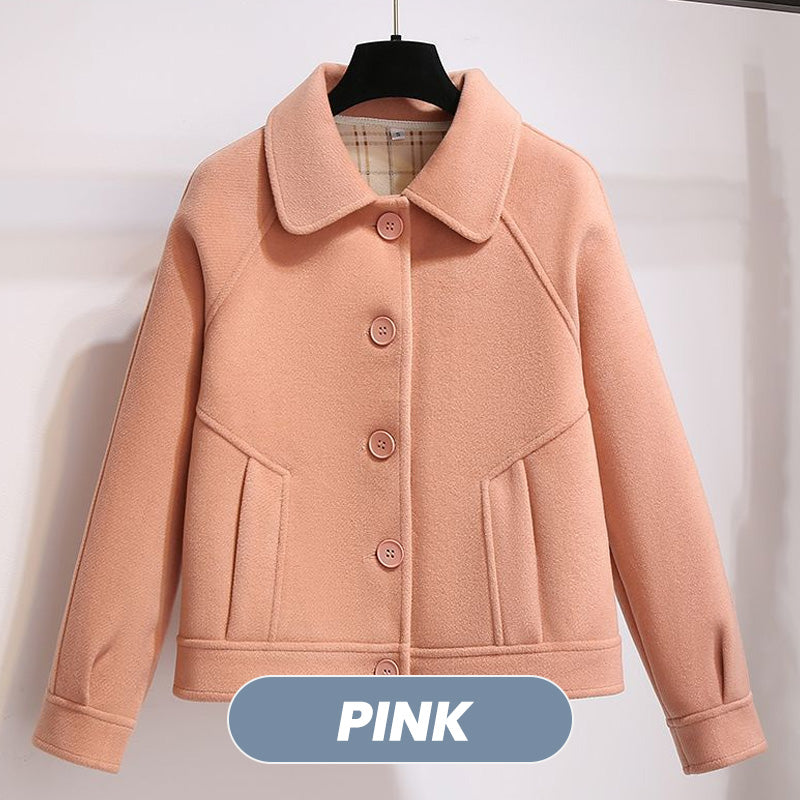 Naisten lyhyt päällystakki, jossa on taskut