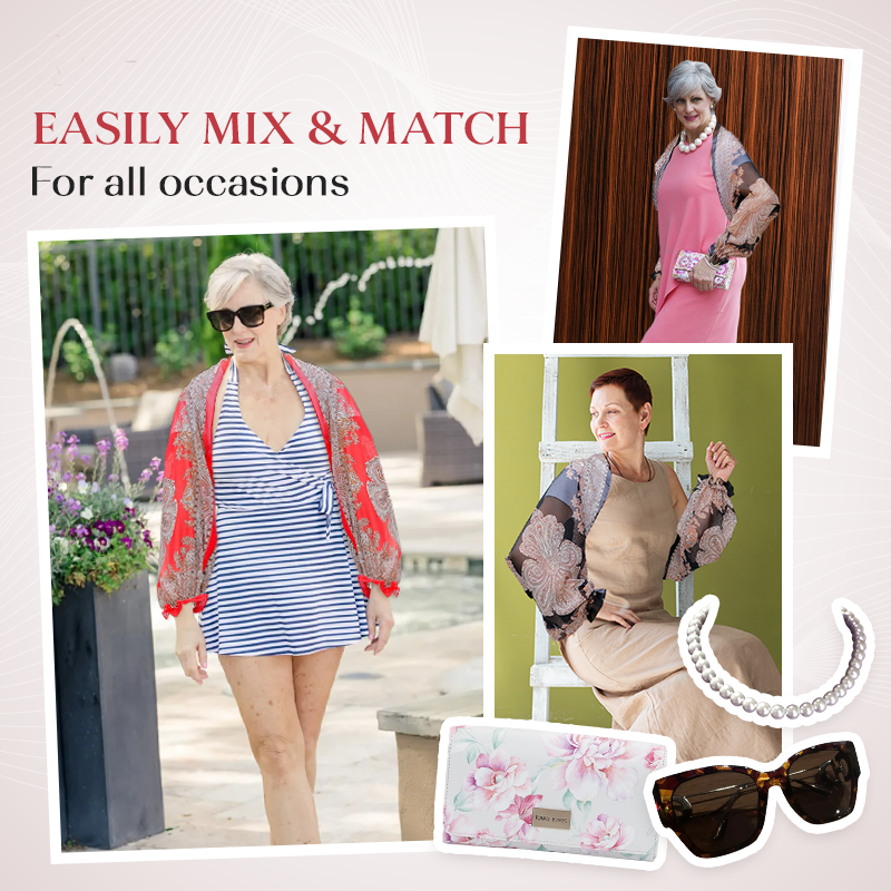 Koe rajaton monipuolisuus tämän hihahuivi kanssa, joka muuttuu vaivattomasti ranskalaistyyliseksi retro-printtiseksi rantahuiviksi, elegantiksi takiksi, mukavaksi kääreeksi sisätiloihin ilmastoiduissa tiloissa, tyylikkääksi pitkäksi hameeksi lomavaatteisiin ja muuhun.